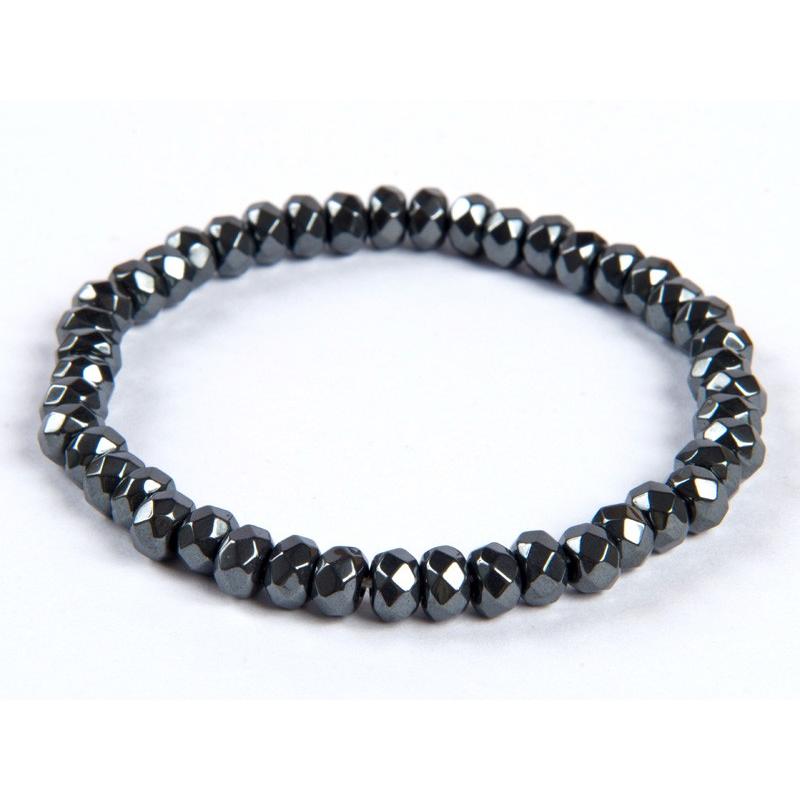 A karkötő 6x4 mm-es hematit korong felhasználásával készült duplasoros gumira fűzve.