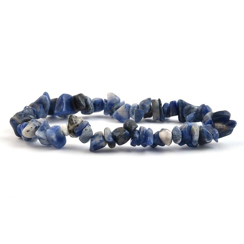 A szodalit 0,5-1 cm-es szemcséiből fűzött gumis karkötő. Hossza kb. 19 cm.